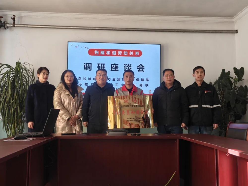12月25日,烏拉特后旗人社局黨委書記、局長敖日格樂,總工會副主席潘瑩,工商聯(lián)副主席馬述敏等一行人到訪,在公司二樓會議室開展座談會并進行“勞動關(guān)系和諧企業(yè)”授牌儀式,公司黨支部副書記、經(jīng)理史小亮,職能部室人員參加座談會。