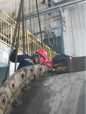 檢修期間,技術(shù)人員全程現(xiàn)場駐點指導與監(jiān)督。從舊端蓋的拆卸、接觸面的精細打磨處理,到新端蓋的精準起吊定位以及最終的密封性能測試,每一道工序均嚴格遵循既定工藝標準和質(zhì)量要求。面對端蓋重量大、安裝空間受限等技術(shù)難題,檢修團隊迎難而上,憑借專業(yè)的吊裝設(shè)備和精湛的操作技能,平穩(wěn)高效地完成了舊端蓋拆除與新端蓋安裝就位。經(jīng)過細致調(diào)整連接螺栓的緊固力矩,確保了端蓋與筒體之間達到卓越的密封效果。安全監(jiān)督人員全程旁站監(jiān)護,對吊裝作業(yè)、動火作業(yè)、臨時用電等關(guān)鍵環(huán)節(jié)實施嚴格安全管控,有力保障了整個施工過程的安全零事故。通過全體參檢人員的協(xié)同攻堅,端蓋更換任務(wù)較原計劃提前17小時圓滿完成。