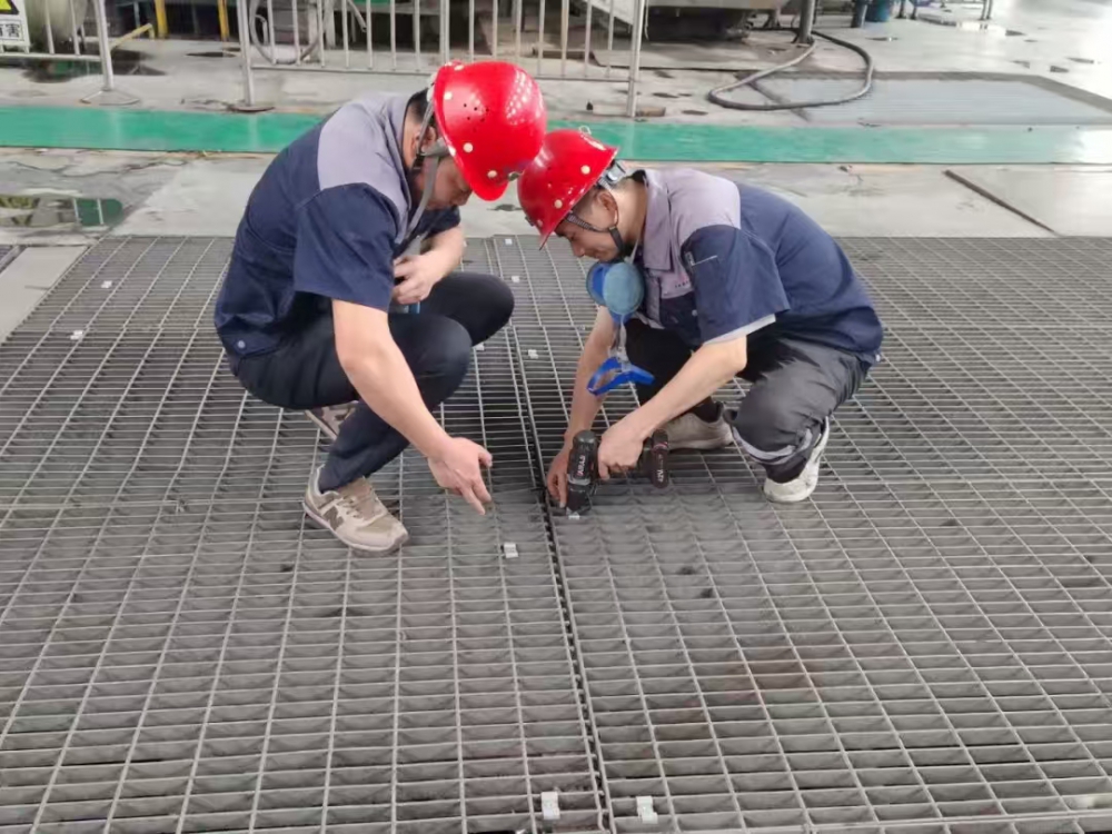突出問題精準治理。一選廠已生產(chǎn)運行多年,濃密車間人行通道地板腐蝕嚴重,數(shù)次進行修修補補,存在較大安全隱患。為徹底解除隱患,公司利用停機間隙,籌集資金、人力、物資,對70米通道的地板、護欄、橫梁和支柱進行全面拆除更換,有效保障了作業(yè)區(qū)域安全;同時,為汲取內(nèi)蒙古“7.23”格柵板脫落事故的教訓,切實保障員工及參觀人員的生命安全,公司購買8000套固定卡扣,對兩個選廠磨浮車間格柵板進行加固處理,并在參觀通道設立了安全提示牌。